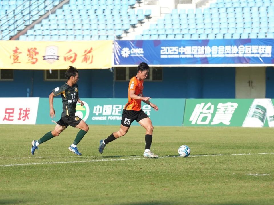 厦门壹零贰陆足球俱乐部队员(右)在比赛中。(厦门壹零贰陆足球俱乐部 供图)